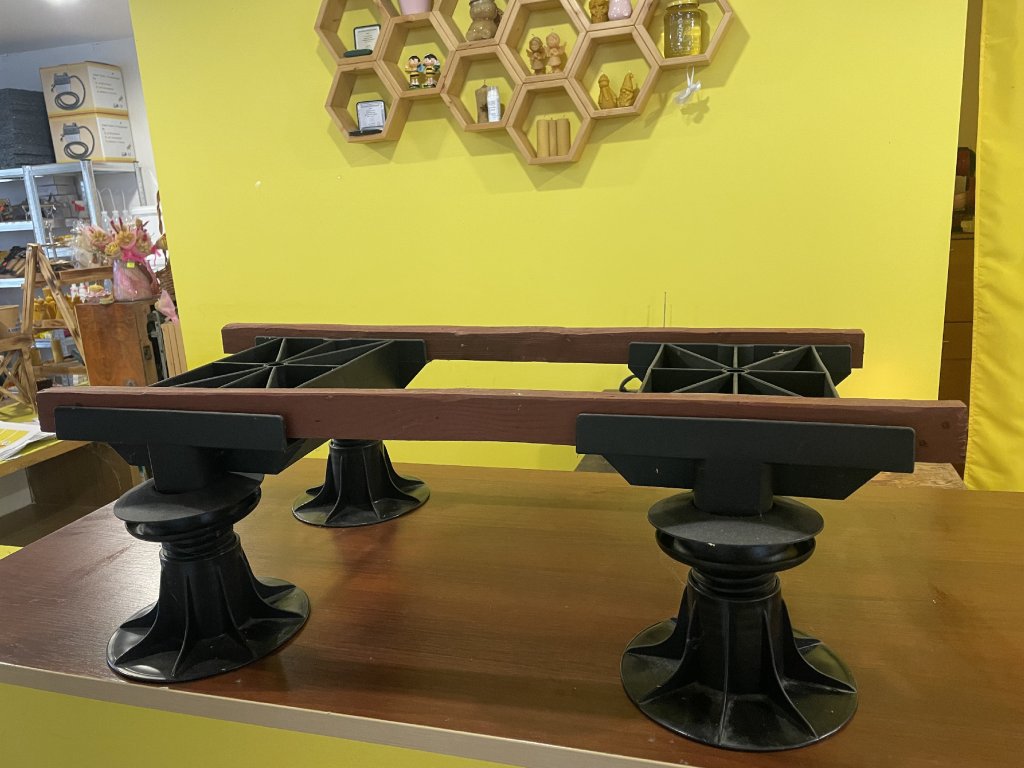 Nosnosť cez 500 kg, pripravené na spojenie nosníkmi z kovu 40x40 alebo hranolom 40x100mm, variabilná vzdialenosť podľa počtu úľov.